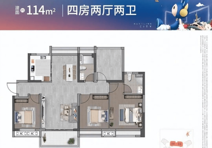 建面约114m²四房,可满足三代同堂,共处一个屋檐。