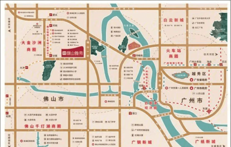 深业旗山雅苑坐落在里水大道南右侧,下亨村出口,位处广佛交界核心泛金沙洲里水展旗山板块,地块毗邻佛山一环,沿里水大道南往东可入广州。