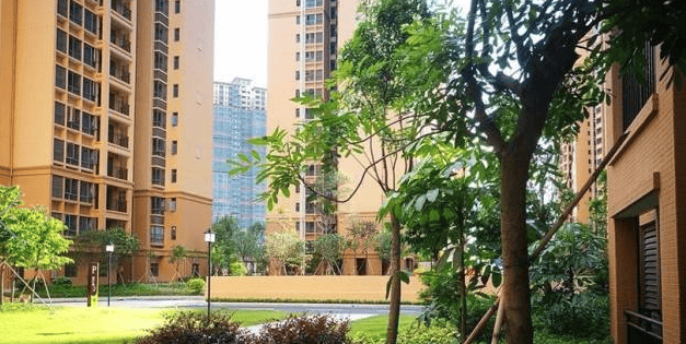 小区环境:小区整体建筑风格简约大气,外立面以黄色涂料为主。内部环境优美,有花园、广场,花园内绿植景观层次丰富,还配有健身设施、儿童娱乐设施等,道路两旁为草坪和树木花草,整体环境安静舒适。