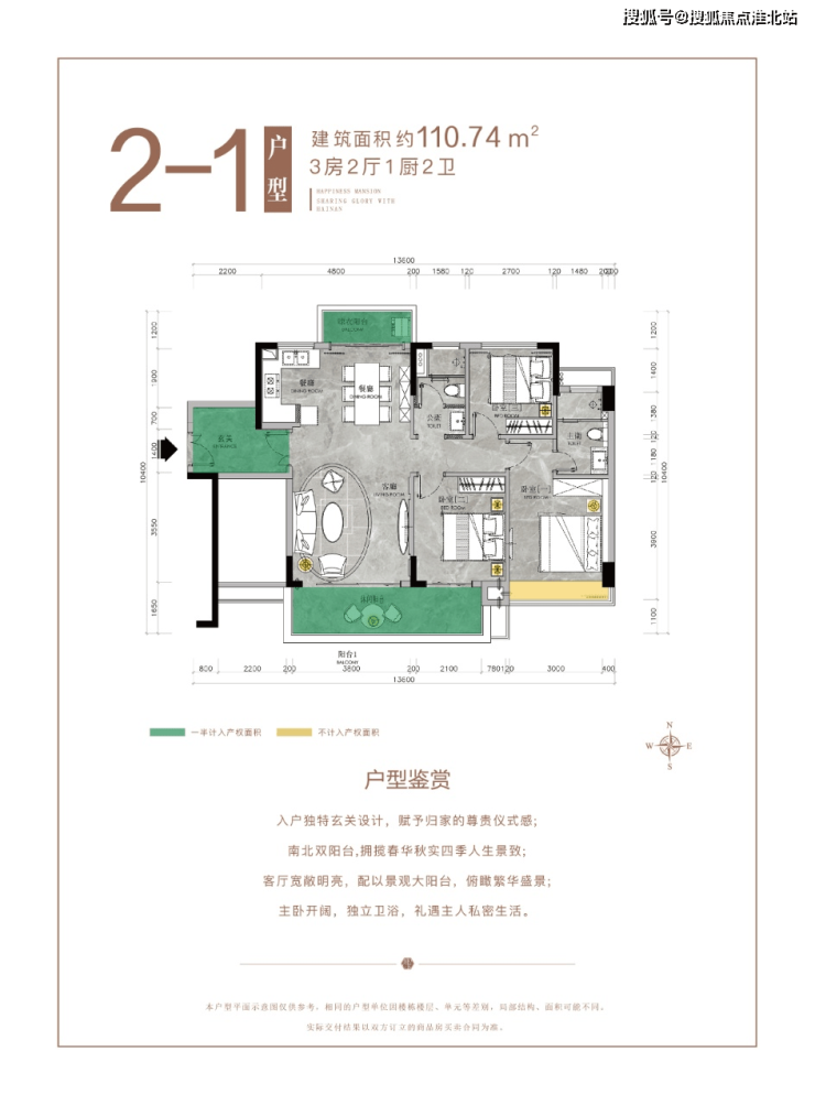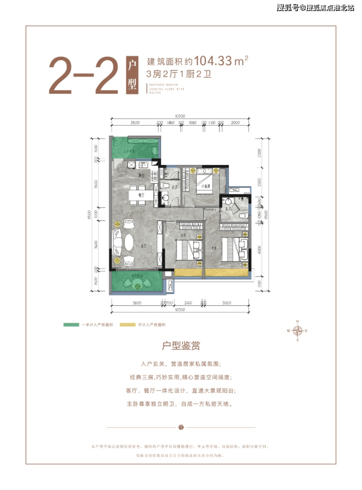 2号楼:110.74㎡三房两厅;104.33㎡三房两厅