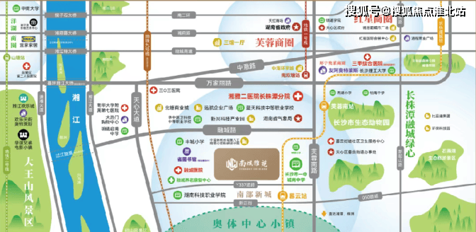 交通配套:项目拥有 “五横、四纵” 的立体交通网络,“五横” 指东西向的中意路、万家丽路、融城路、Y337 道路、新正街,“四纵” 指南北向的湘江大道南延线、天心大道、芙蓉南路和新韶山路。此外,周边还有城市公共交通,有多条公交线路途经,如公交 27 路、134 路、125 路、212 路等,往北直线 1.5 公里有长株潭轻轨芙蓉南站。