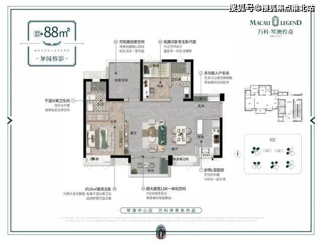 7.特色产品——片区内稀缺洋房万科美好家系列,采用LDK风格打造高层65㎡2房、79㎡2+1房、88㎡2+1房、98㎡3+1房,洋房105㎡3+1房、135㎡顶复等珠海高实用爆款户型。