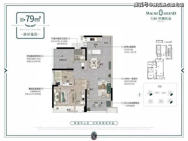 【高层住宅】:【65㎡2+1室2厅1卫】【79㎡2+1室2厅2卫】【88㎡2+1室2厅2卫】【98㎡3+1室2厅2卫】【洋房住宅】:【105㎡3+1室2厅2卫】【135㎡3+1室2厅2卫】琴澳中心区·澳门生活共同体—万科·琴澳传奇建面约65-135㎡ 高层小户/洋房顶复 项目鸟瞰效果图