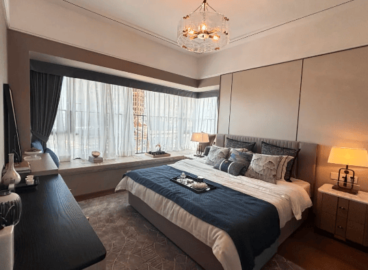 装修标准:全屋一线品牌精装交付,配备智能门锁、中央空调、品牌厨电等,细节如隐藏风管式空调、电动窗帘插座等,提升居住品质。