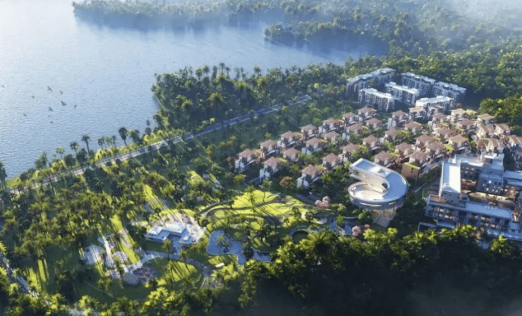 地理位置:项目地处北纬 18.4° 黄金度假带,位于万宁兴隆镇侨乡路 88 号,三面环山、一面临湖(3000 亩馨湖),毗邻石梅湾、日月湾等国际滨海度假区,坐拥 “山、海、湖、林” 四重生态资源,负氧离子含量达 8000 个 /cm³。