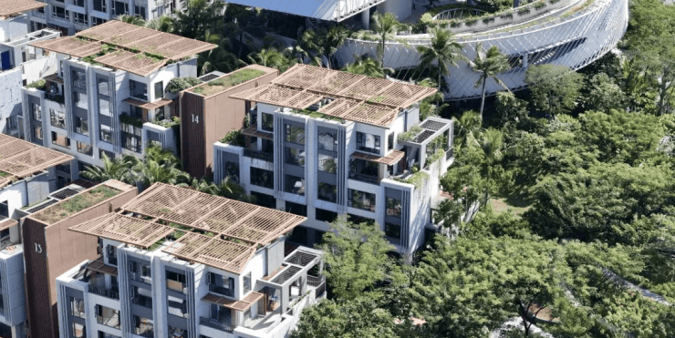 热带雨林景观:保留原生雨林植被,规划五大景观组团,包含跌水瀑布、雨林艺术花园、天台儿童乐园,实现 “户户有景、步步皆画”。