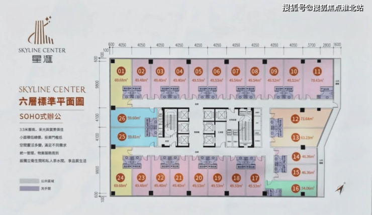 首推建面约49㎡SOHO酒店式辦公,自带獨立街生間,享獨立入戶大堂及專用電梯,集辦公、休、自用和出租等多元化功能於一體。