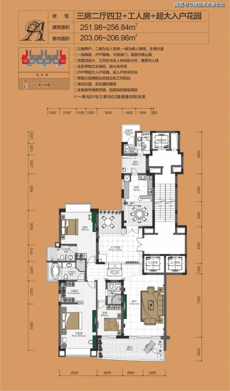 罗汉松、多头樟树等名贵树种,在高低错落的韵味中式园林中,与恒温泳池相辉映,与大海相呼应;金碧辉煌的奢华入户大堂,朱炳仁的百万巨幅铜雕壁画,三梯两户、坐北朝南尊贵设计,成为南海湾的人居标杆。