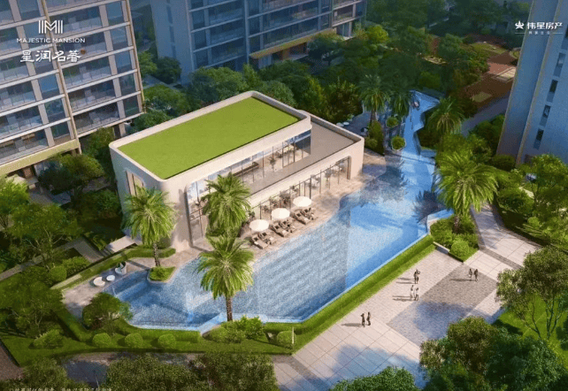 景观设计:以 “一轴四组团” 的手法,构建院落式自然雅境,打造了镜面泳池、探险乐园、玻璃花房等丰盛设计,同时设置架空层泛会所,筑起居者的 “第二客厅”,可安放休闲、学堂、健身等愉悦场景。