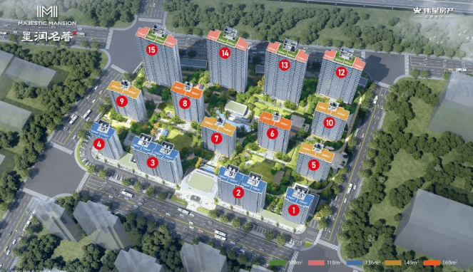 面积区间:户型建面约 109-169㎡,涵盖了 3 室 2 厅 2 卫到 4 室 2 厅 2 卫等多种户型,可满足不同家庭结构的需求。