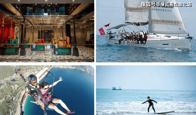 休闲娱乐:石梅湾国际游艇会可举办各种国际性专业海上赛事,提供水上泊位 213 个;还有盘古掌冲浪俱乐部、天鲸直升机观光等项目,以及九里润街、M1 咖啡奇幻工场等餐饮休闲场所。