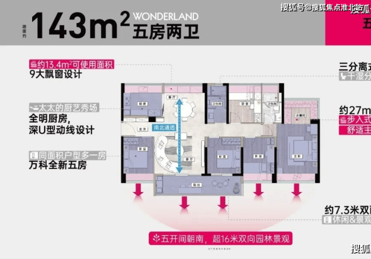 建面约143平户型,实现目前东莞少见的5房,满足二胎家庭、三代同堂等需求。