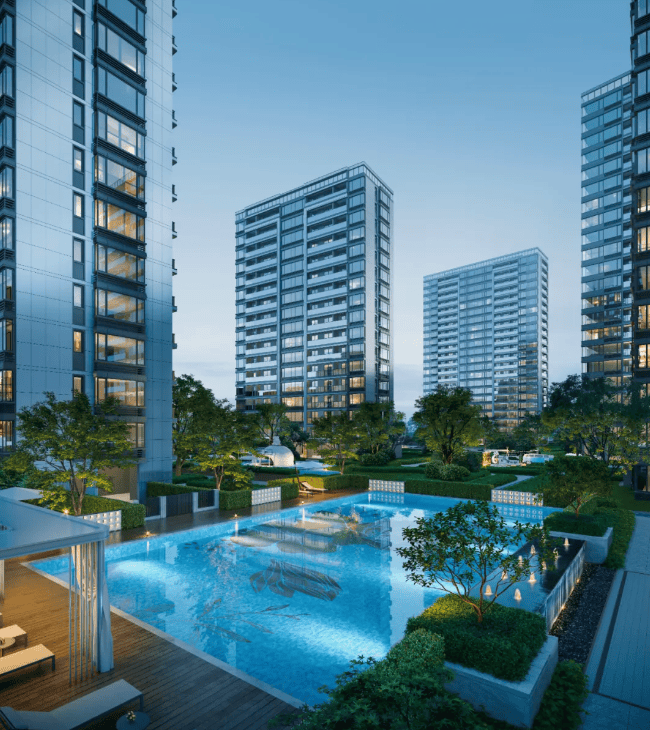 配套设施:小区共两个出入口,采用全人车分流管理,内部打造完整的人行绿化步道;地下停车场设置 “劳斯莱斯星空顶”;还配备了滑板区、羽毛球场、高尔夫果岭推杆练习场等,满足业主多样化的休闲需求。