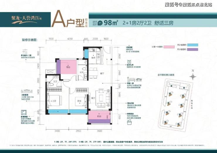 98平,三房两厅两卫 约7.5㎡景观阳台,动静分区,生活更舒适。