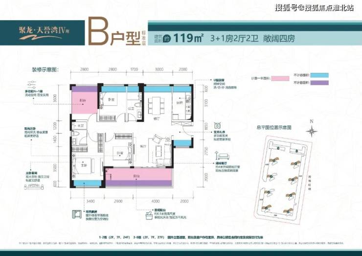 119平,四房两厅两卫 约7米开间超大景观阳台,南面是光的站台,北面是风的驿站。