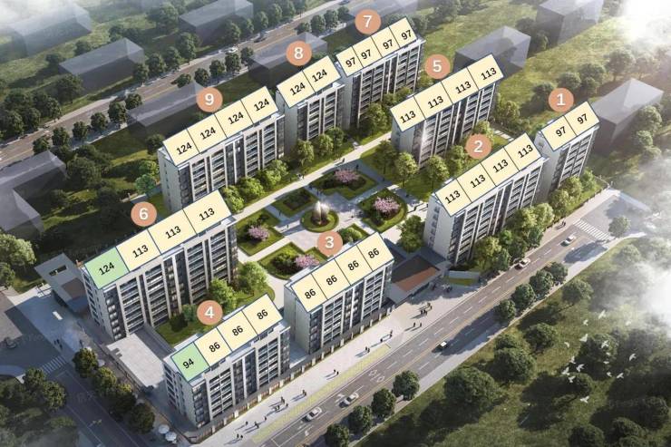 户型种类:主力户型为建面约 86-124㎡的 2/3/4 居室,有 86㎡和 94㎡的 2 室 2 厅 2 卫户型、97㎡和 113㎡的 3 室 2 厅 2 卫户型以及 124㎡的 4 室 2 厅 2 卫户型。