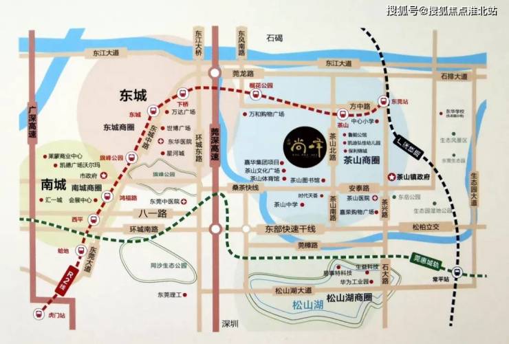 茶山镇紧挨着东城,与松山湖相隔着寮步镇,因此成为松山湖、城区购房族的重点考虑对象。那么,德盛尚峰的交通条件究竟如何呢?