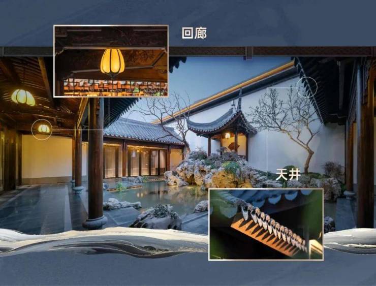 江映月园林以三进归家礼序为脉络,从博雅门的恢宏迎宾,到昼锦堂的“四水归堂”聚气,再到涵碧园的飞瀑揽月,层层递进间,将传统礼制与现代居住需求完美融合,赋予归家每一步以尊崇仪式感。