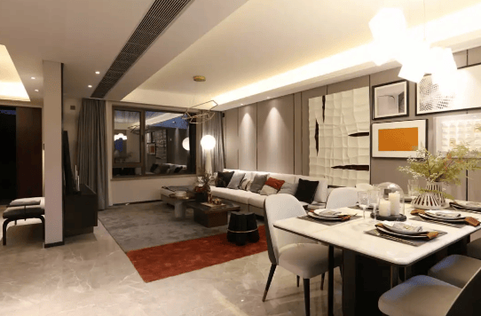 品质住宅:保利第五代标杆作品,采用二层干挂石材、真石漆外立面,精装标准包括中央空调、全屋地暖、新风系统。
