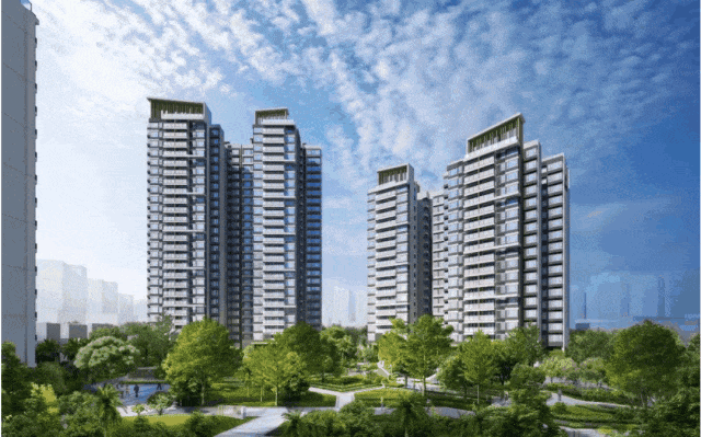 户型信息:户型涵盖建面约 103-214㎡,有三房、四房以及大平层户型。其中,建面约 140㎡的四房户型,四开间朝南,南向面宽约 13.8 米,拥有约 6.9 米南向阳台,可瞰中心园林。