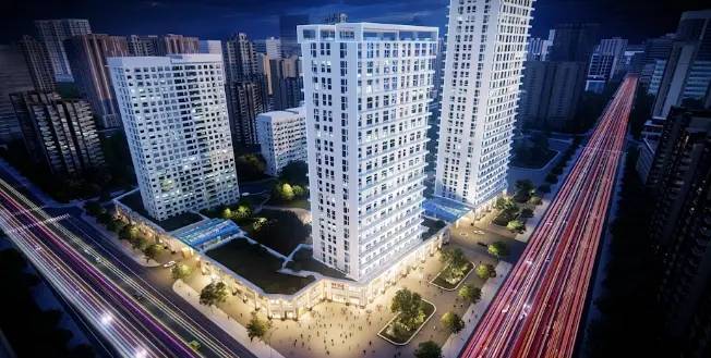 整体规模:总占地约 3.3 万㎡,总建面约 16 万㎡,5 栋商业办公楼;容积率 3.6,绿化率 35.65%,车位 1219 个(地上 200、地下 1019);40 年商业办公产权,2023 年底全现房交付