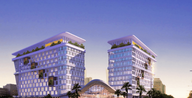 基本信息:产权年限 40 年。项目占地面积约 10,128.69㎡,建筑面积约 35,930.96㎡,建筑高度约 56.9m,容积率为 2.2,绿地率 40%,客房数 279 间,交付标准为毛坯(含外立面玻璃幕墙施工完毕)。酒店地上 12 层,地下 2 层,裙楼 1-2 层和 12 层主要是餐饮配套等商业设施,3-11 层为酒店客房。