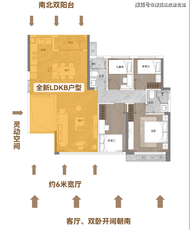 建面约103㎡4+X房2厅2卫,多一处创改空间,随心所欲,儿童房、书房或多功能室,满足全家人的不同需求。无论是三口之家的温馨甜蜜,还是三代同堂的其乐融融,都能在这里找到舒适的居住方式