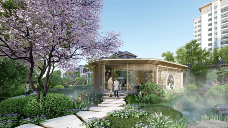 规划设计以绿色发展为导向,传承经典、纵享现代,形成“一环、两轴、三组团”的规划结构。