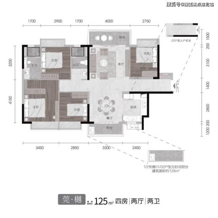 建面约125㎡四房两厅两卫