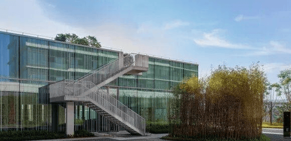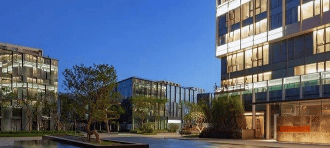建筑形态:多栋高层/超高层建筑群,现代玻璃幕墙设计,部分为绿色生态建筑。