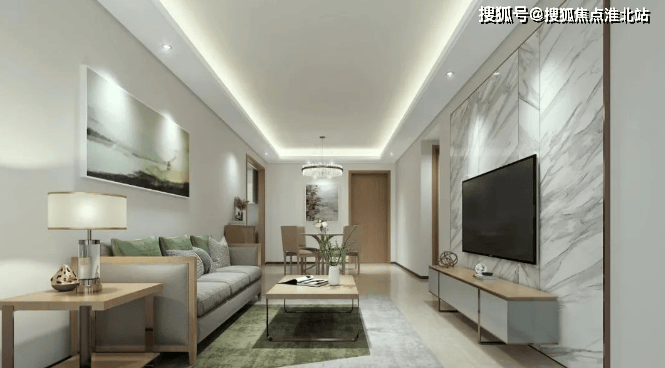 约 90㎡的三房两厅两卫:客厅、卧室朝园林、水景,享绝佳景观,居住体验较好。