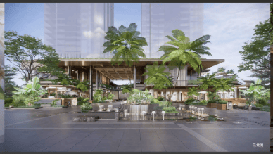建筑设计:由 7 栋高层住宅围合组成,规划建筑面积约 29 万㎡。整体采用垂直分层的功能布局,构建出包括廊下烟火商业街区、中央车站和抬高式檐上浮岛花园露台的三层立体都市空间,营造出独特的居住氛围。