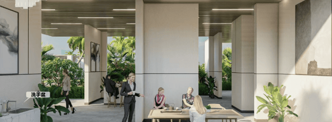 园林景观:以 “林屿” 为主线贯穿园林始终,园林八大主题空间串联,包括椰林嘉观澜,沐光剧场、海浪客厅等场景交织,兼顾功能性和美观性。