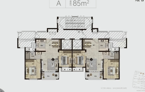 面积区间:建筑面积约有 85㎡、94㎡、101㎡、112㎡、125㎡等多种选择。