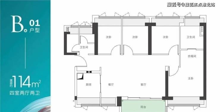 B座01户型-建面约114m² 四房两厅两卫