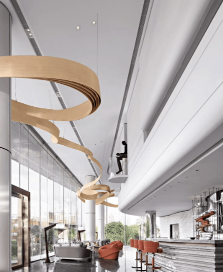 地标建筑:约150米高的5A甲级写字楼,采用现代简约、大气恢弘的设计风格,以世界奢石铺陈、鎏金肌理等元素彰显高端形象,是企业实力与国际形象的最佳展示窗口。