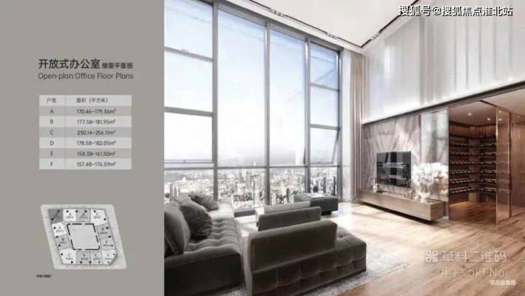 户型:酒店式办公 35-65 ㎡、开放式办公 146- 268 ㎡