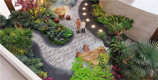 景观设计:充分利用场地的高差变化,营造丰富有趣的景观宜居空间。泳池会所景观区由叠级无边泳池、休闲会客厅、热带雨林等营造热带休闲风光;中庭景观区由多功能草坪、休闲廊架、艺术小品与建筑的围合营造温馨静谧又有复合功能的休闲景观场地。