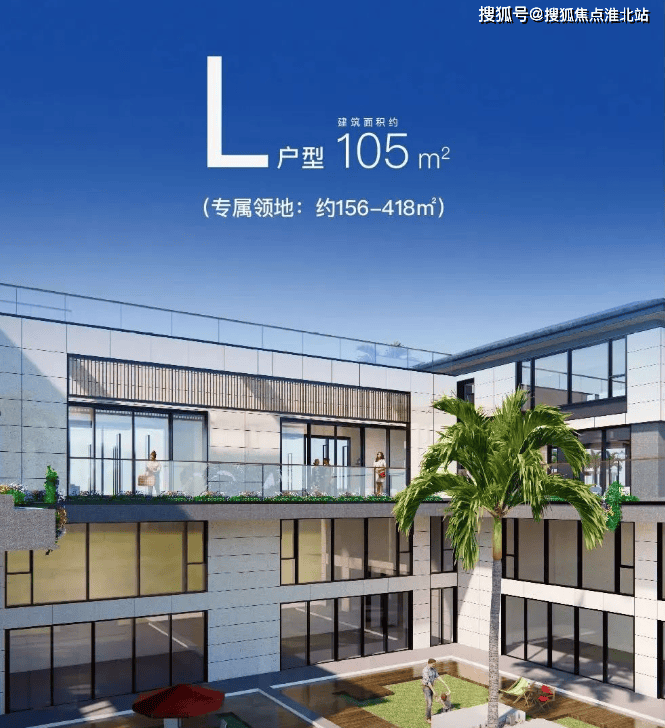 L 型商业:建面约 104.87-105.05㎡,合院组团、空间阔绰,双层空间四个界面(首层挑高约 6m + 地下层挑高约 6m)。