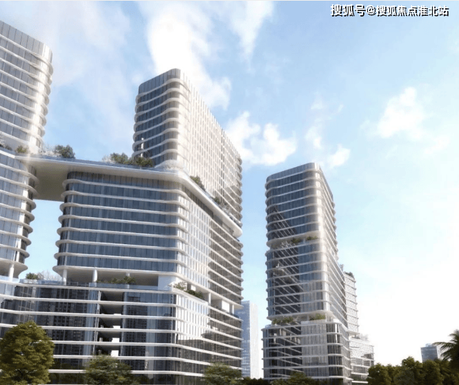 垂直花园办公:以三亚城市气质及气候特点为灵感,塑造 “吹着海风,在花园里办公” 的城市绿岛,通过错落的空中布局,营造大量垂直绿化空间,形成全新的垂直花园办公聚落。