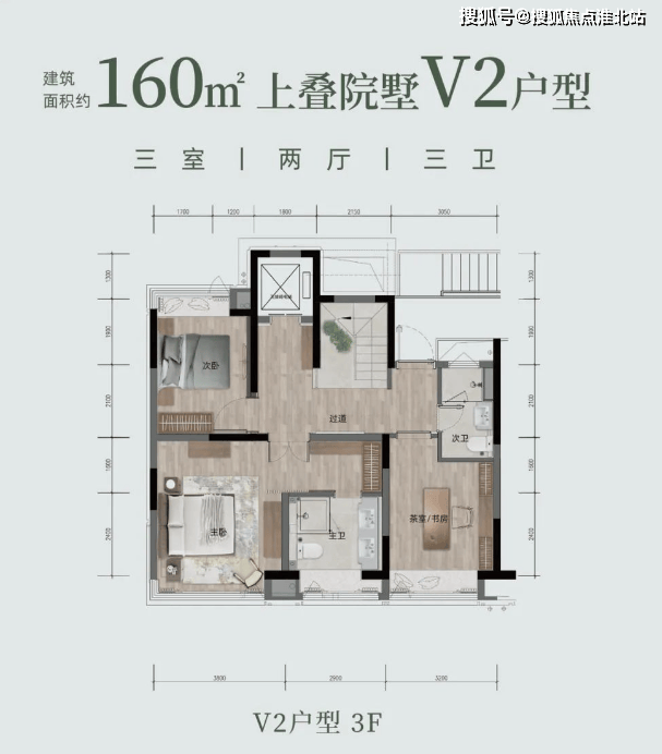 上叠院墅 V2 户型:约 160㎡(或 158.1㎡),三室两厅三卫。有私人电梯、双重玄关,约 6.1 米度假观景横厅,270° 三面采光,约 30㎡L 型花园露台,能欣赏 270° 环幕景观,主卧奢阔,配备步入式衣帽间与独立卫浴。
