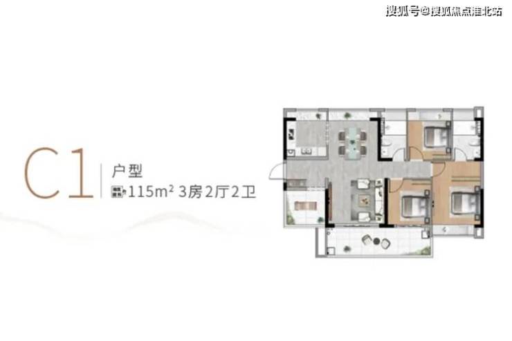 最后这个建面约115㎡的3+1房2厅2卫户型,可以说绝绝子。