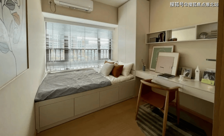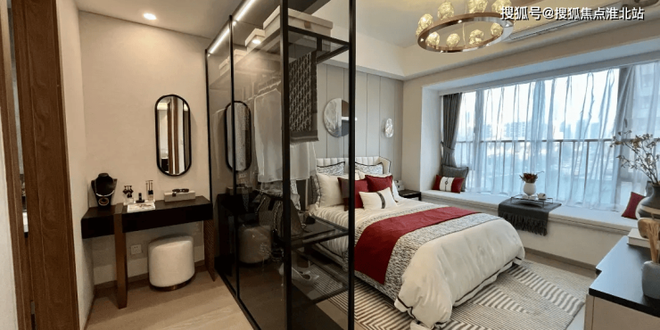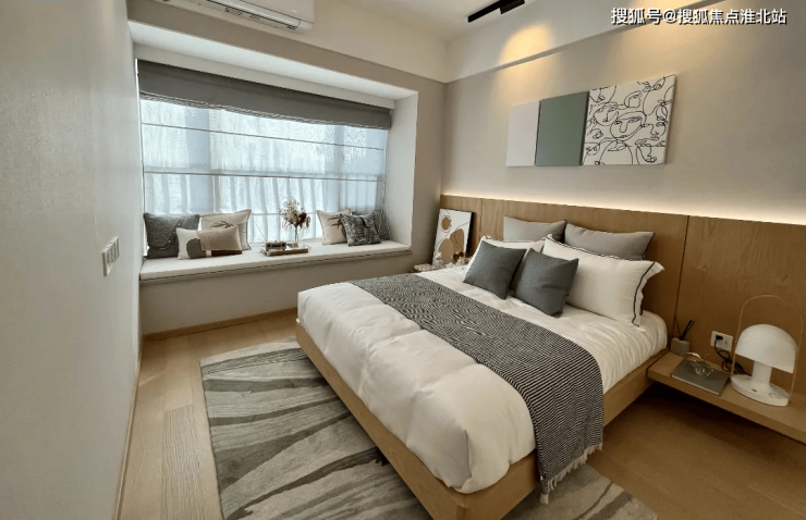 主卧3.3米的朝南飘窗加上浴室自带的明窗,在卧室也能做到南北通风,双面采光也是非常好。