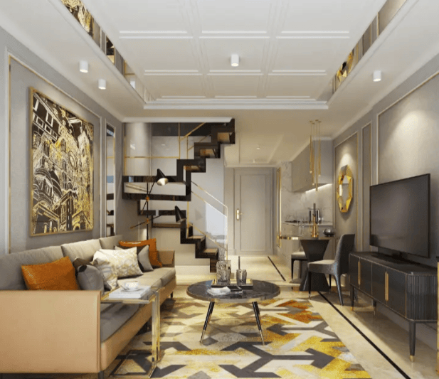 建筑与户型:建筑类型为高层,采用创新中空单向走廊设计,以满足通风、采光需求。户型以复式公寓为主,主力户型为 33㎡,买一层送一层,可打造为两房,实用率约 200%,还有双匙尊寓、4.5m 中空 LOFT 等户型,空间功能多变,宜商宜居。
