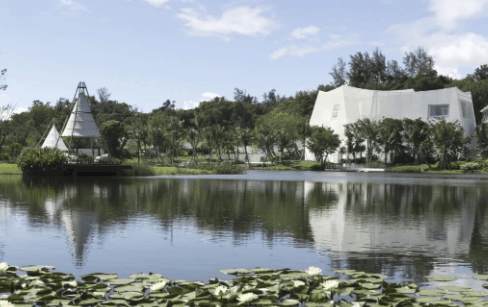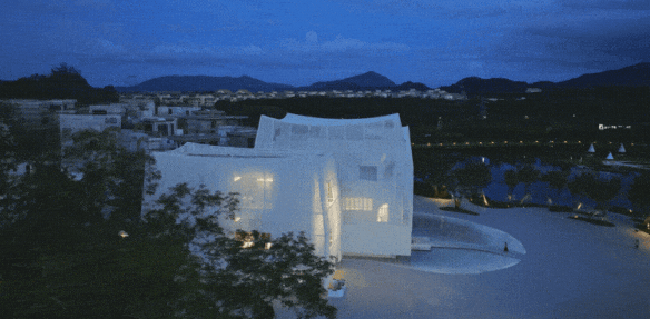 建筑设计:其水上运动中心以独特的 “空间翻转” 设计与坡地自然环境完美融合,荣获 2024 年美国缪斯设计大奖。艺术中心采用 “一池三山” 的设计理念,色法拉利膜三种穿孔率渐变,随光变幻,极具艺术震撼力与生态智慧。