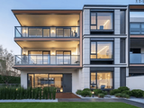 建筑设计:住宅立面采用公建化设计,运用现代简约线条,搭配铝板和玻璃,色彩上采用银白搭配冷灰色系,呈现流银质感立面。