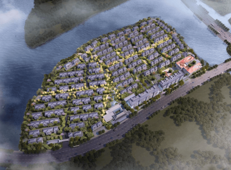 基本信息:项目位于绍兴越城东湖板块,地处则水牌路与袍中路交叉口,独踞约 2.3 公里滨水岸线,形成天然半岛格局。项目容积率仅 1.05,规划 72 栋建筑,共 75 户,均为毛坯现房交付。