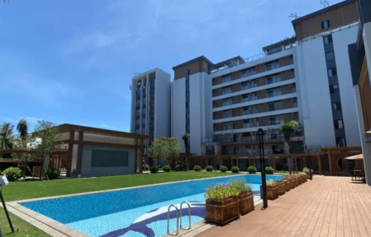 规模与形态:占地约 8880㎡(约 8.9 亩),总建面约 11562㎡(含商业约 1173㎡);容积率1.2,绿化率45%;规划 2 栋 8 层住宅洋房 + 1 栋 3 层商业 / 酒店;总户数 124 户,机动车位 76 个、非机动车位 50 个;2 梯 8 户,板塔结合;2024 年 10 月底精装交付(部分批次 2023 年已交),纯现房、现证,精装(含软装 / 家具家电)交付