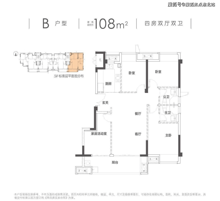 °灵动·四房户型:97-110㎡的成长型户型,全明全通透方正格局,可变四房,满足成长型家庭的各种可能,从二人世界到三口之家,从三胎时代再到三代同堂,都可以兼顾到,为人居提供全新的解决方案。