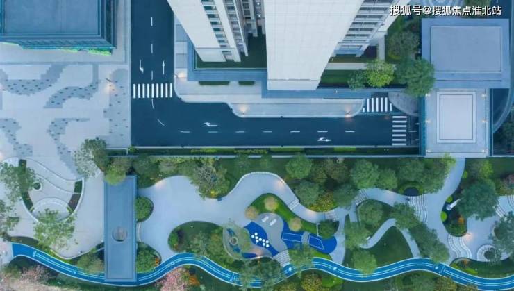蓝色的漫步道是连接地面商业广场和二层社区的纽带, 流畅有序 , 为空间带来流动性和明显的方向性。 礼奢气质的社区礼仪门户, 搭配灌木小品, 让葱郁的绿意涌现出你的眼前,生机盎然的体验感应然而生。沿路而行, 穿寻流动的绿道空间 ,时光在脚下的点点微光中逐渐凝结,追溯一处静谧时光。